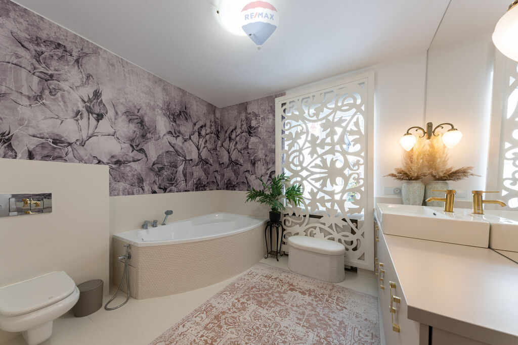 garderobę , stylową łazienkę z wanną oraz kolejny, widny pokój,
